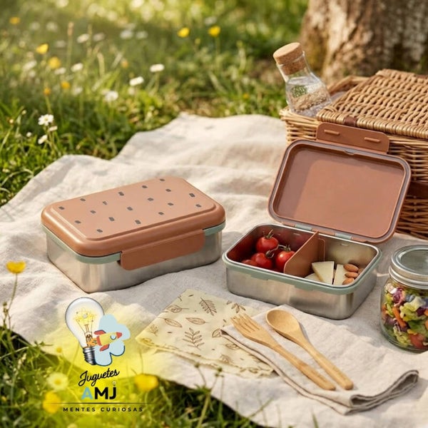 Precioso tupper hermético fabricado en acero inoxidable que, con su separador flexible y extraíble, ofrece opciones ilimitadas para picar algo en almuerzos y meriendas, y transportart tu comida preferida en este original diseño de alta calidad.